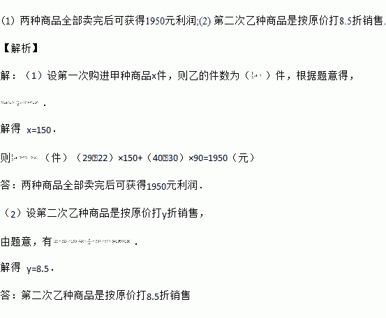 元,求第二次乙种商品是按原价打几折销售?![]()