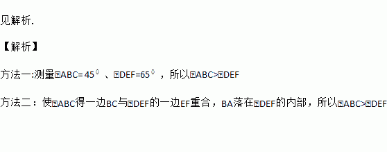 对于图中给定的∠ABC与∠DEF,用以上两种方法分别比较它们的大小.