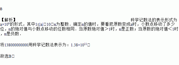 A. 1.38×1010元 B. 1.38×1011元 C. 1.38×1012元 D. 0.138×1012元