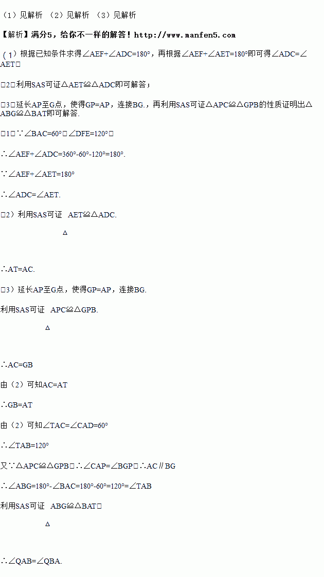 已知:如图所示,在△ABC中,∠BAC=60°,AD=AE,BE、CD交于点F,且∠DFE=120°.在BE的延长线上截取ET=DC,连接AT.