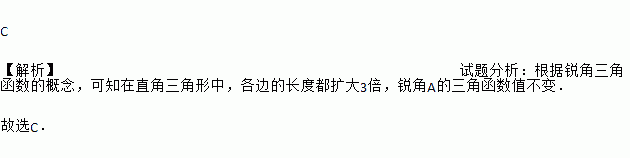 在直角三角形中,各边的长度都扩大3倍,则锐角A的三角函数值