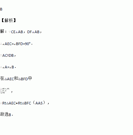 如图,CE⊥AB,DF⊥AB,垂足分别为E、F,AC∥DB,且AC=BD,那么Rt△AEC≌Rt△BFD的理由是( )