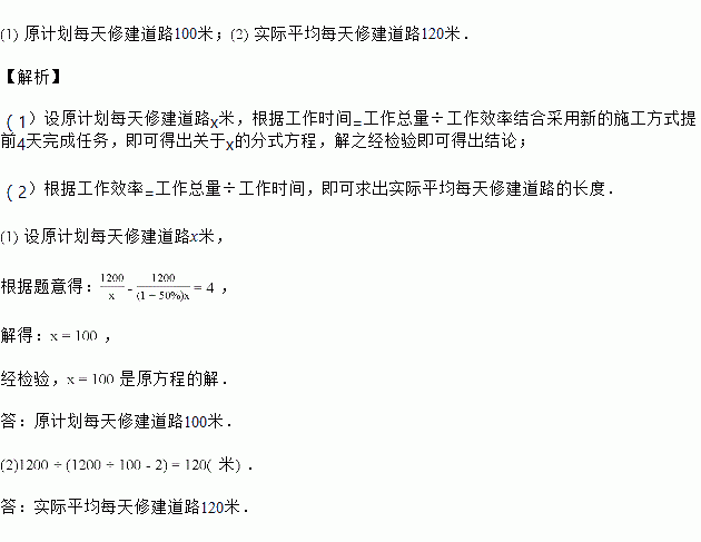 某工程队修建一条长1200米的道路,采用新的施工方式,工效提升了50%,结果提前4天完成任务.