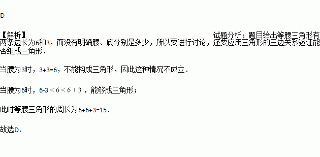 如果等腰三角形两边长是6和3,那么它的周长是( )