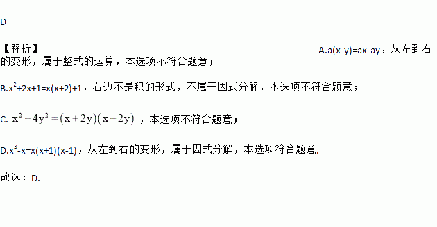 下列等式从左到右的变形,属于因式分解的是( )