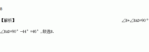 如图,AD是△ABC的高,已知∠B=44°, 则∠BAD 的度数是( )