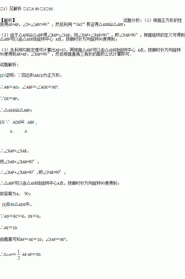 (2)△ABF可以由△ADE绕旋转中心________点,按顺时针旋转________度得到;