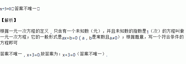 写出一个一元一次方程,使它的解是-3,这个方程是____ .