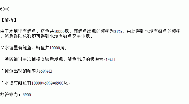 一水塘里有鲤鱼、鲢鱼共尾,一渔民通过多次捕捞实验后发现,鲤鱼出现的频率为![]()