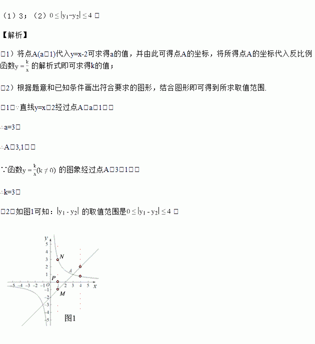 (2)已知点P(m,0)(1≤m< 4),过点P作平行于y轴的直线,交直线y=x-2于点M (x1,y1),交函数