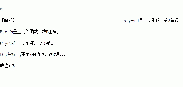 下列式子中,表示y是x的正比例函数是( )