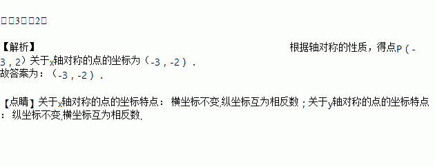 P(﹣3,2)关于x轴对称的点的坐标是______.