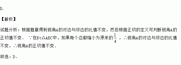 在Rt△ABC中,∠C=90°,如果把Rt△ABC的各边的长都缩小为原来的,则∠A的正切值( ).