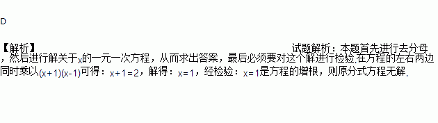 A. x=1 B. x=-1 C. x=3 D. 无解