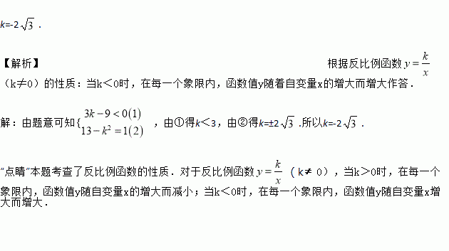 的图象在其所在的象限内,y随x的增大而增大,求k的值.