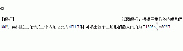 若一个三角形的三个内角度数之比为4∶3∶2,则这个三角形的最大内角为________度.