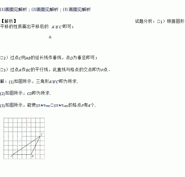 (3)在图中能使S三角形PBC=S三角形ABC的格点P有 个(点P异于A).