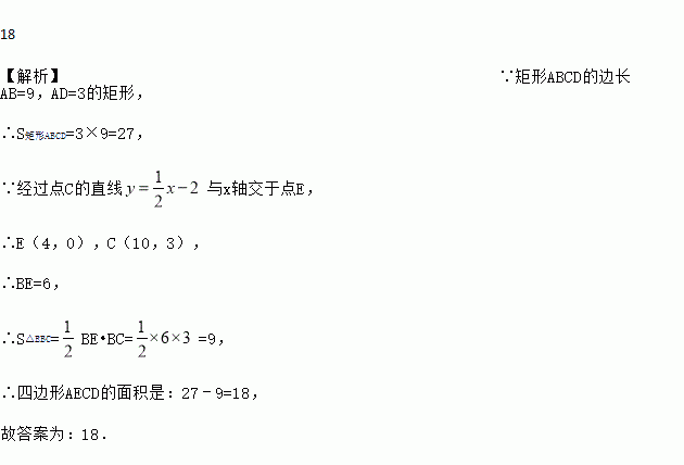 如图,矩形ABCD的边长AB=9,AD=3,将此矩形置于平面直角坐标系xOy中,使AB在x轴正半轴上,经过点C的直线与x轴交于点E,则四边形AECD的面积是_____.