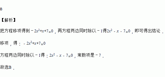 把方程化为二次项系数为正数的一般形式后,它的常数项是( )