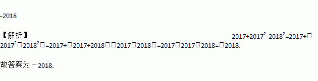-2018 【解析】2017+20172-20182=2017+(20172-20182)=2017+(2017+2018)(2017-2018)=2017-2017-2018=-2018. 故答案为-2018.