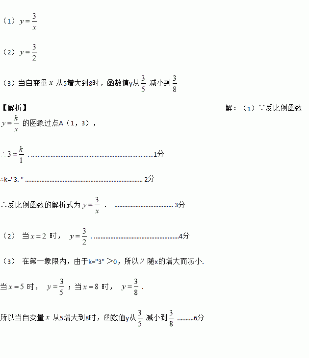 (3)当自变量从5增大到8时,函数值y是怎样变化的?