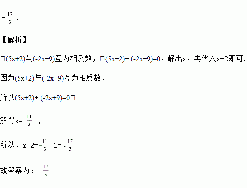 若(5x+2)与(﹣2x+9)互为相反数,则x﹣2的值为_____.