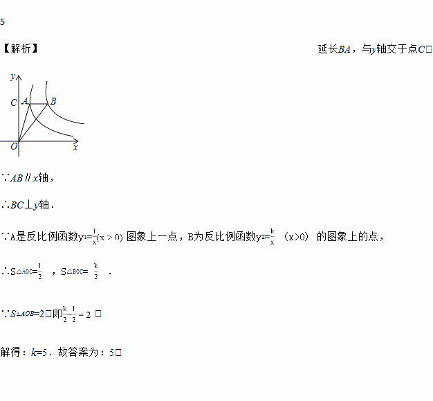 (x>0)的图象于点B,连接OA、OB,若△OAB的面积为2,则k的值为________.