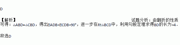 如图,点D在△ABC的边AC上,将△ABC沿BD翻折后,点A恰好与点C重合,若BC=5,CD=3,则BD的长为( )