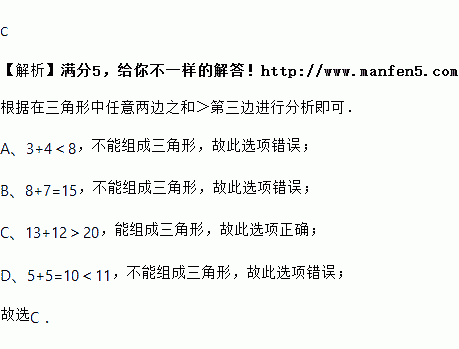 A. 3,4,8 B. 8,7,15 C. 13,12,20 D. 5,5,11