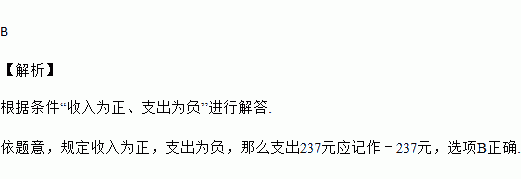 如果规定收入为正,支出为负.收入500 元记作500元,那么支出237元应记作 ( )