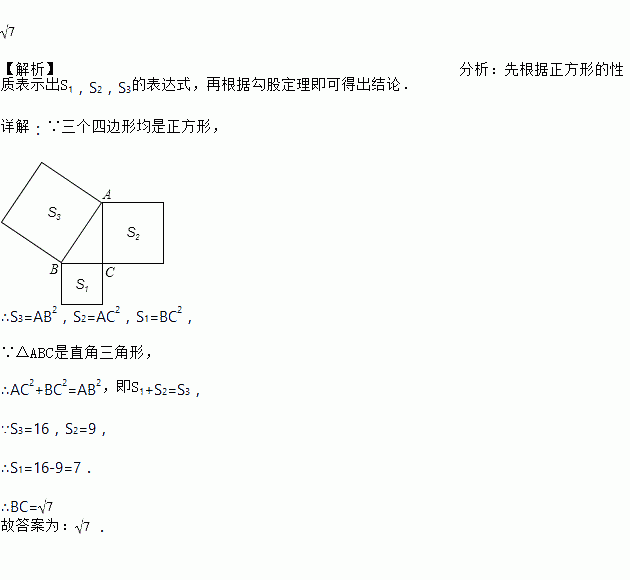,分别以AB、AC为边向外作正方形,面积分别记为![]()