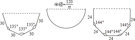 课题研究:现有边长为120厘米的正方形铁皮,准备将它设计并制成一个开口的水槽,使水槽能通过的水的流量最大.初三(1)班数学兴趣小组经讨论得出结论:在水流速度一定的情况下,水槽的横截面面积越大,则通过水槽的水的流量越大.为此,他们对水槽的横截面进行了如下探索: