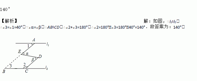 如图,直线l1∥l2,∠α=∠β,∠1=40°,则∠2=_____.