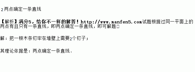 把一根木条钉牢在墙壁上需要 ______ 个钉子,其理论依据是: ______ .