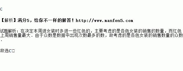 经理决定本周进女装时多进一些红色的,可用来解释这一现象的统计知识是( )