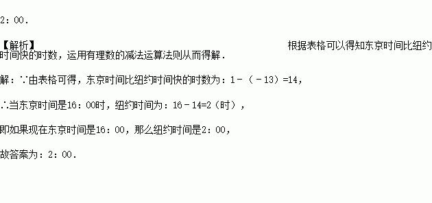 如果现在东京时间是16: 00,那么纽约时间是______.(以上均为24小时制)