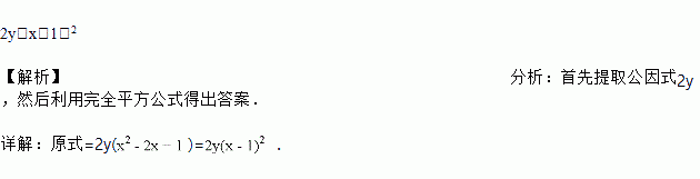 分解因式2x2y-4xy+2y的结果是_____.