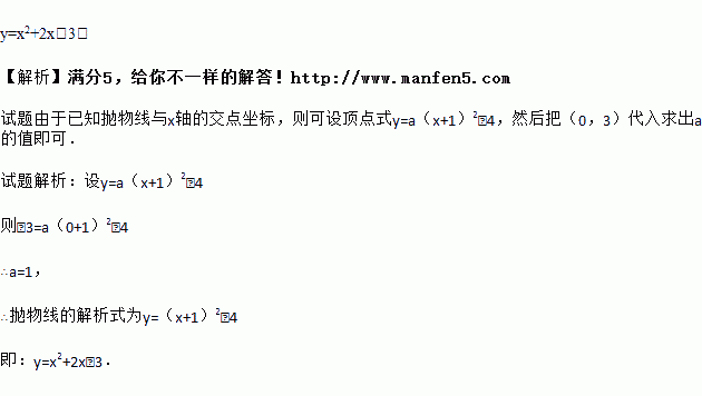 已知二次函数当x=﹣1时,有最小值﹣4,且当x=0时,y=﹣3,求二次函数的表达式.