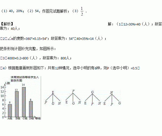 (4)测试老师想从4位同学(分别记为E、F、G、H,其中E为小明)中随机选择两位同学了解平时训练情况,请用列表或画树形图的方法求出选中小明的概率.