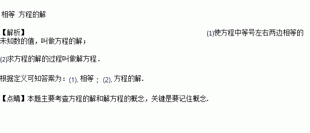 (1)使方程中等号左右两边________的未知数的值,叫做方程的解;