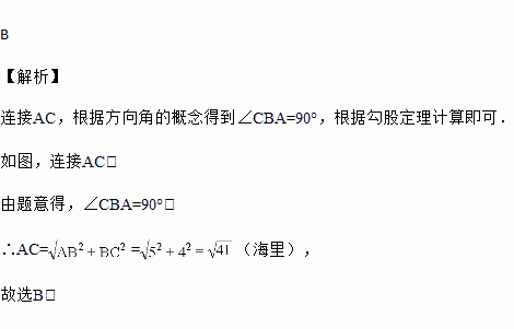 如图,一艘巡逻船由A港沿北偏西60°方向航行5海里至B岛,然后再沿北偏东30°方向航行4海里至C岛,则A、C两港相距( )