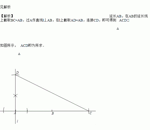 如图所示,已知线段AB,请你以点A为直角顶点,利用尺规作图作Rt△ACD,使得点C在线段AB的延长线上且AC=2AB,另一条直角边AD=AB.(保留作图痕迹,不写作法)