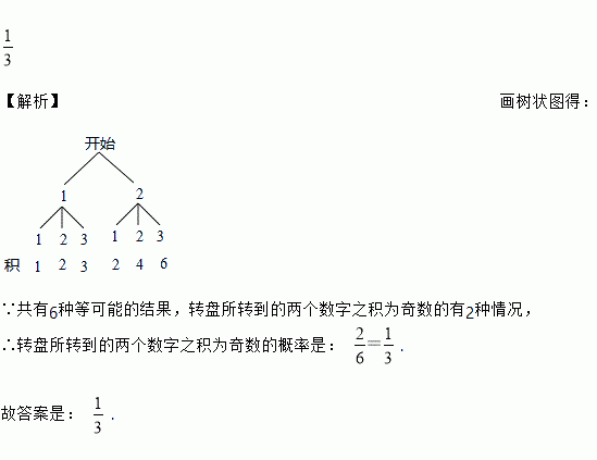如图,现分别旋转两个标准的转盘,则转盘所转到的两个数字之积为奇数的概率是______ .