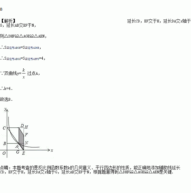 过点A,延长对角线CA交x轴于点E,以AD、AE为边作平行四边形AEFD,若平行四边形AEFD的面积为4,则k值为( )