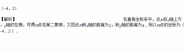 在直角坐标系中,点M在X轴上方,Y轴的左侧,到X轴的距离为2,到Y轴的距离为4,则M点的坐标为__________