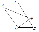 如图,将△AOB绕点O顺时针旋转36°得△COD,AB与其对应边CD相交所构成的锐角的度数是_____.