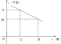 某片果园有果树80棵,现准备多种一些果树提高果园产量,但是如果多种树,那么树之间的距离和每棵树所受光照就会减少,单棵树的产量随之降低.若该果园每棵果树产果y(千克),增种果树x(棵),它们之间的函数关系如图所示.