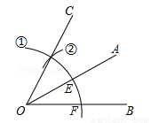 如图,用尺规作图作∠AOC=∠AOB的第一步是以点O为圆心,以任意长为半径画弧①,分别交OA、OB于点E、F,那么第二步的作图痕迹②的作法是( )