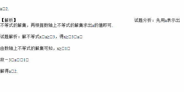 解不等式: 关于x的不等式x-a≥-3的解集如图所示,求a的值.