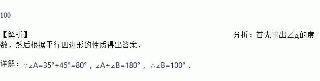 平行四边形ABCD中一条对角线分∠A为35°和45°,则∠B=______________度.